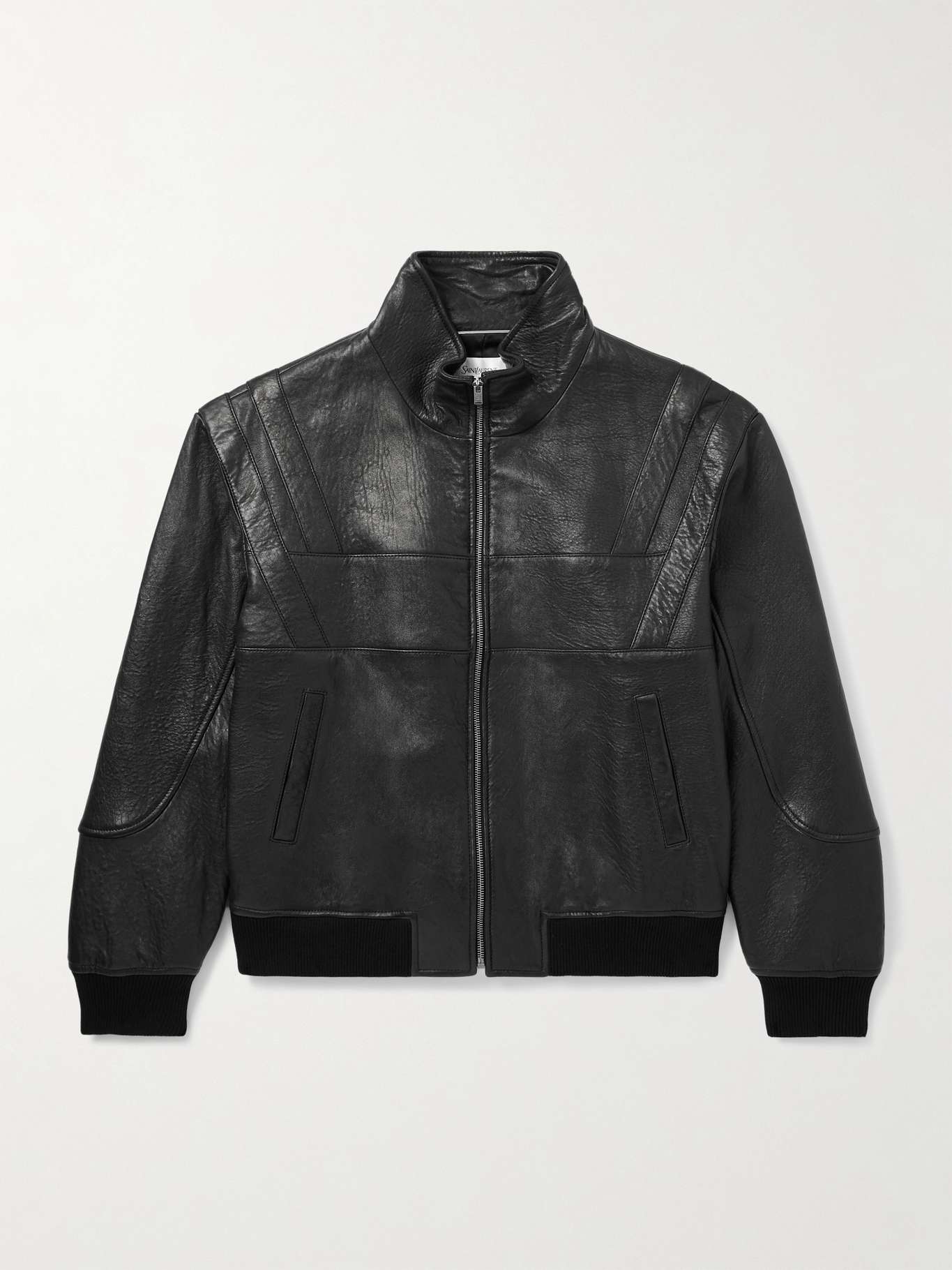 SAINT LAURENT's jacket is a cool, sleek take on blousom styles. It's been made in Italy from soft full-grain leather with angular panelling and knitted ribbed trims that define the shape. Layer yours over a T-shirt.