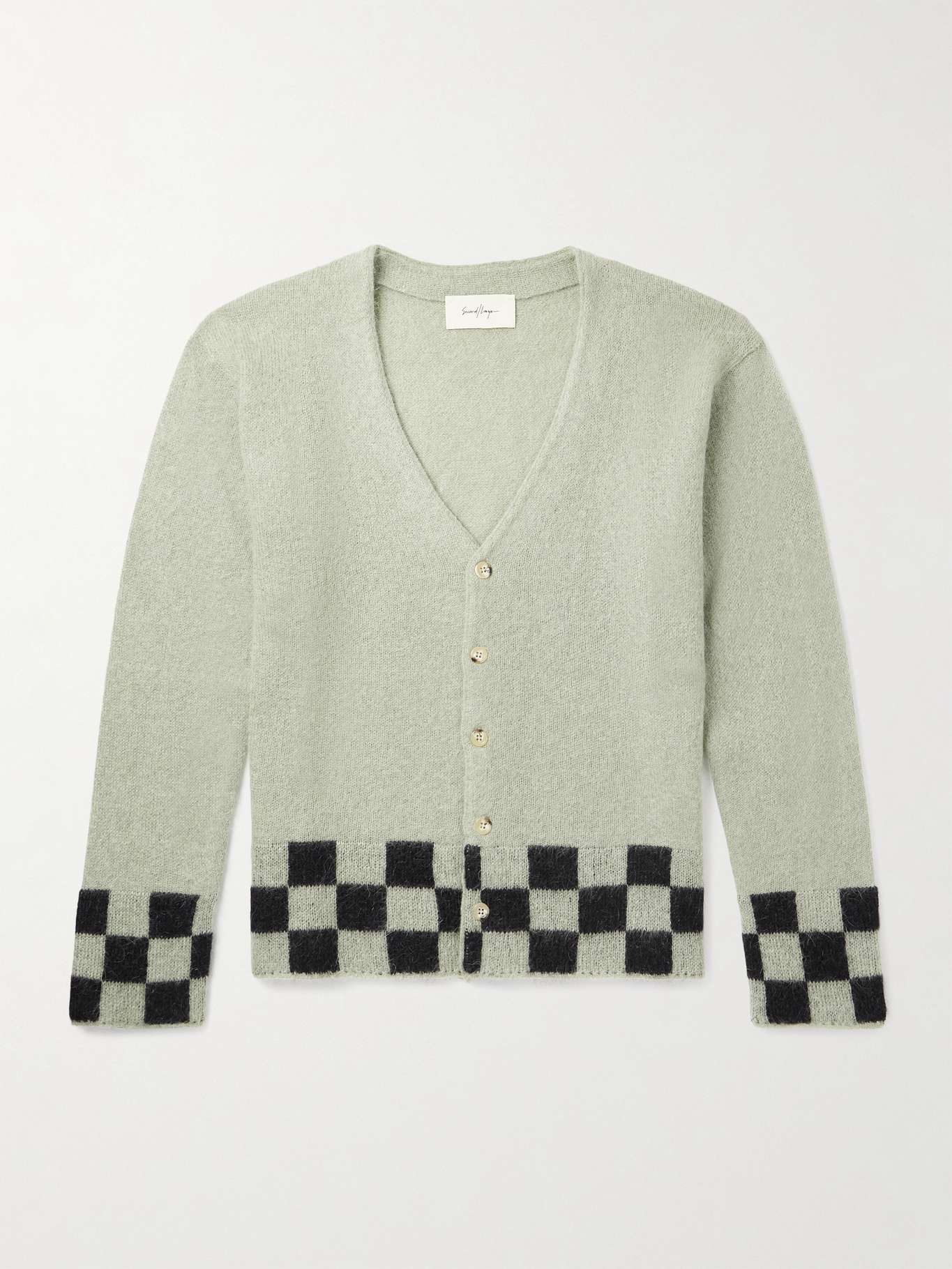 The racing grid checked pattern tipping the hem of SECOND / LAYER's cardigan earns its 'Chevy' namesake. It's knitted from fuzzy mohair-blend for warmth and comfort and fastens with a row of glossy mother-of-pearl buttons. Leave coats and jackets unbuttoned to show off every detail.