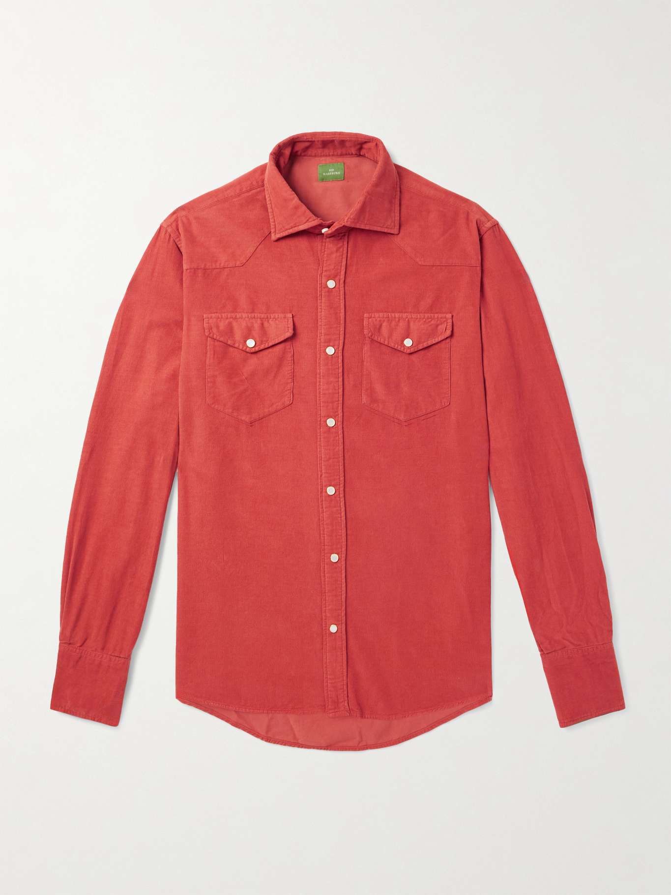 There are subtle nods to classic cowboy style woven through Sid Mashburn's 'Western Work' shirt. Designed with pointed yokes and glossy pearl snaps, it's cut from soft fine-wale cotton-corduroy and has a neat spread collar.