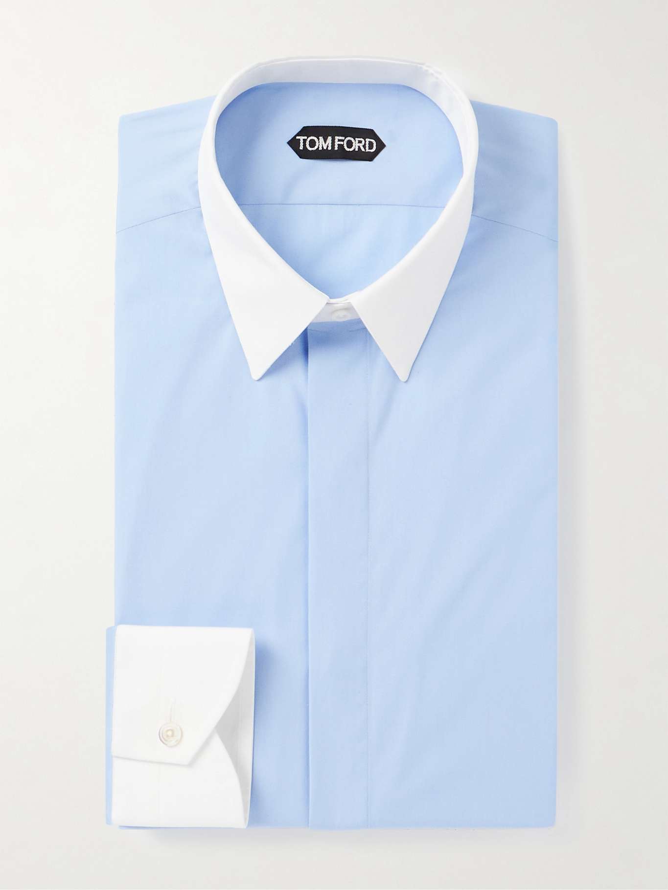 TOM FORD's AW25 runway show featured a selection of well-tailored shirts, courtesy of new Creative Director, Haider Ackermann. Part of the offering, this style is cut for a close fit from crisp cotton-poplin and has a streamlined covered placket and a contrasting collar and cuffs.