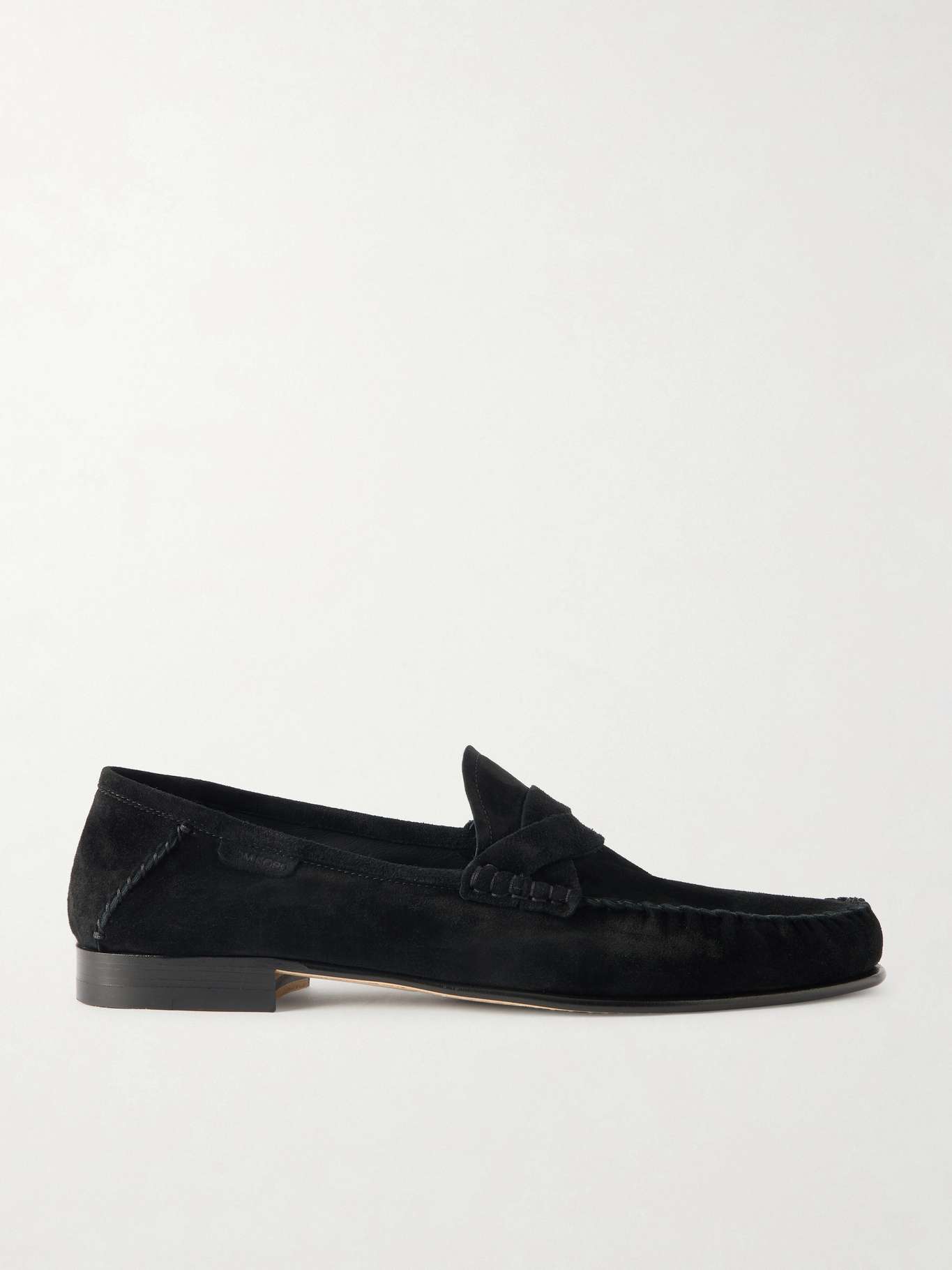 TOM FORD's 'Ripley' loafers are defined by twisted bands in place of classic penny bars. They've been made in Italy from suede and have a rounded, moc-toe shape and exposed stitching along the seams.