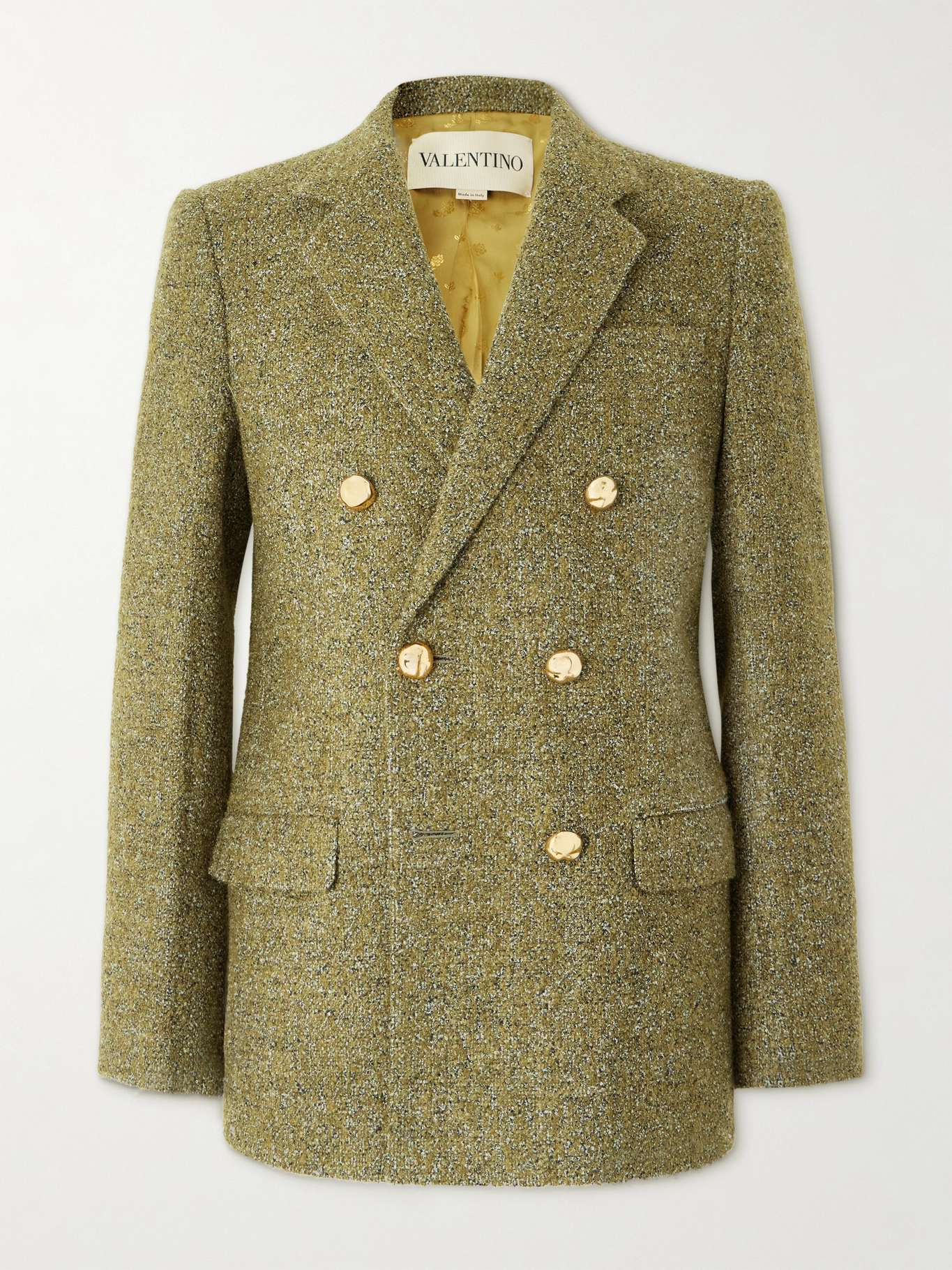 Valentino Garavani's blazer is woven with leaf-green, black and white threads to create a characterful mélange finish. In a double-breasted profile, it's been made in Italy from tactile wool-blend bouclé and is tailored with structured shoulders and set-in sleeves.