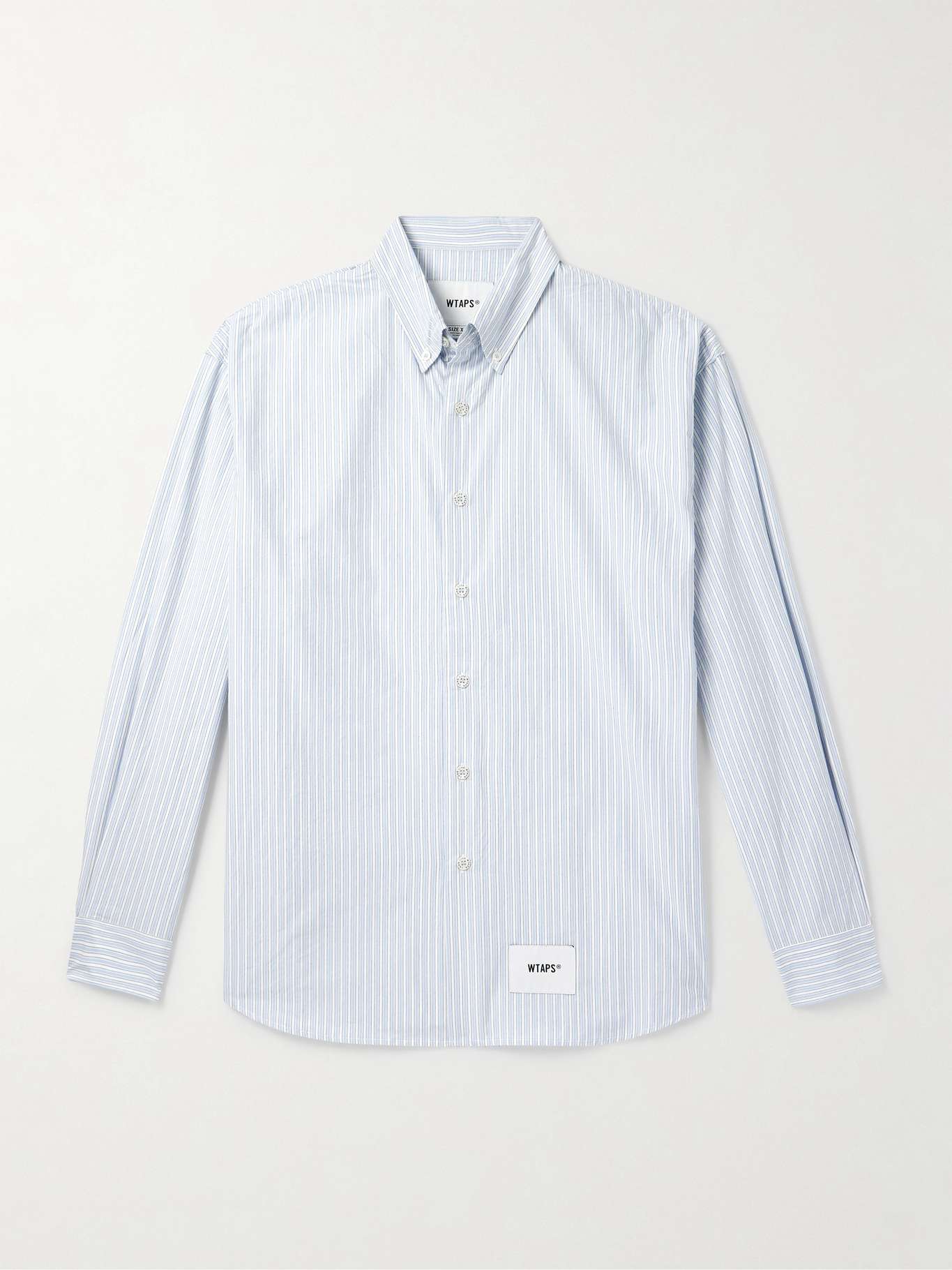 WTAPS®'s shirt is cut for a relaxed fit from cotton that's crisp and lightweight. It's patterned with thin pinstripes and appliqued with the label's logo near the hem.
