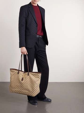 Jackie Large Leather-Trimmed Monogrammed Canvas Tote Bag