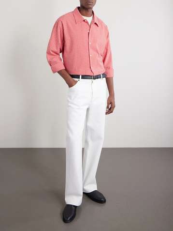 Camp-Collar Checked Poplin Shirt