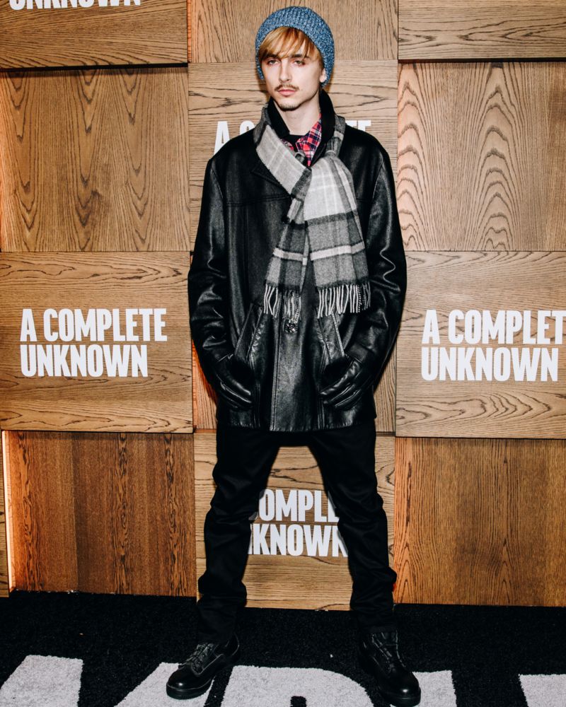 Of course, there’s Timothée Chalamet. Working with stylist Taylor McNeill, the actor might be the OG of this school of dressing, as seen during his red-carpet appearances to promote Bob Dylan biopic A Complete Unknown last year. Rather than lean into the classic Dylan – sunglasses, polka-dot shirt, black jeans – seen in the film, he went deep into the archives. See, for the New York premiere of the film, Chalamet dressed as Dylan at Sundance in 2003, complete with beanie and blonde wig. With a role as table-tennis player Marty Mauser in Marty Supreme up next, expect retro sportswear on the red carpet.