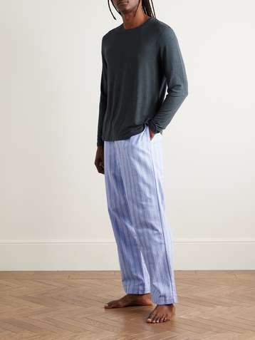 Arran 20 Straight-Leg Striped Herringbone Brushed-Cotton Pyjama Trousers