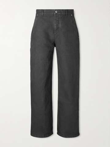 Carpenter Straight-Leg Leather-Trimmed Cotton-Twill Trousers