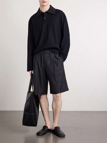 Ponte Wide-Leg Pleated Virgin Wool and Cotton-Blend Shorts