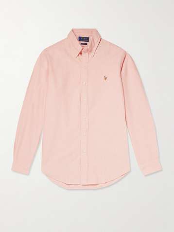 Slim-Fit Button-Down Collar Logo-Embroidered Cotton-Piqué Shirt