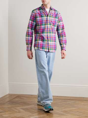 Button Down-Collar Logo-Embroidered Checked Cotton-Flannel Shirt