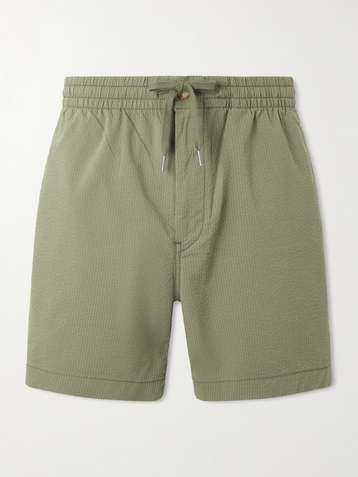 Straight-Leg Cotton-Blend Seersucker Drawstring Shorts