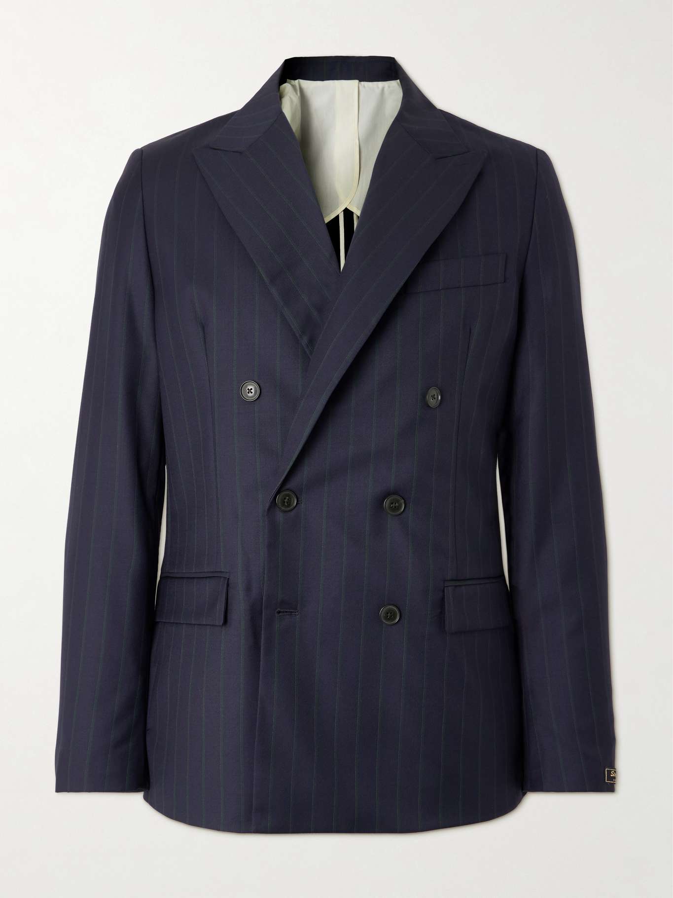 Based in Munich, A Kind of Guise makes suits that feel so fresh and contemporary. This pinstriped blazer is tailored from virgin wool in a double-breasted profile. The partial lining keeps it light and relaxed.