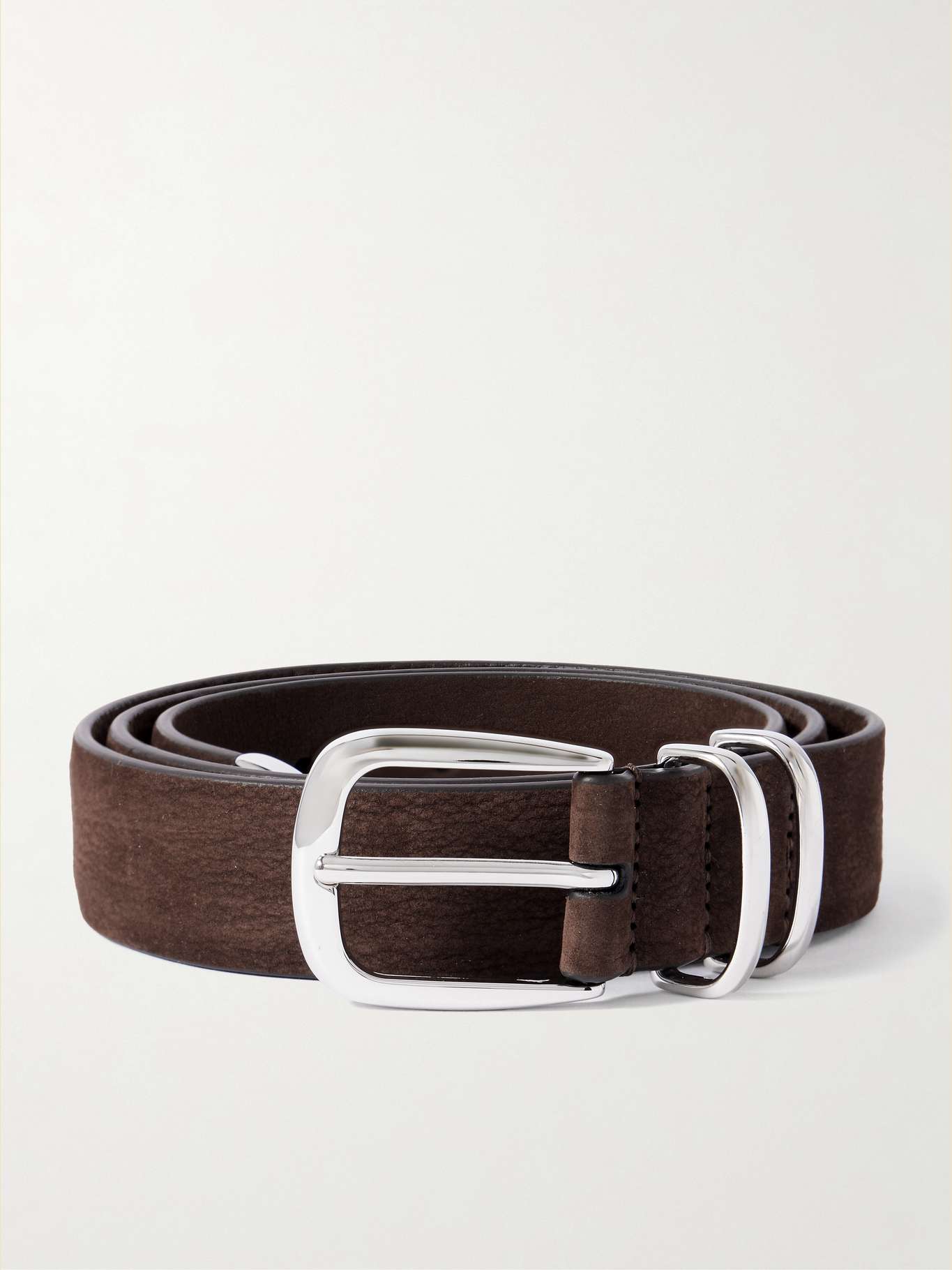 Crafted in Italy, Anderson's belt is made from soft, textured suede and features a silver-tone buckle, end tip and double loops. Its versatility means it can be worn with anything from jeans to tailored trousers.