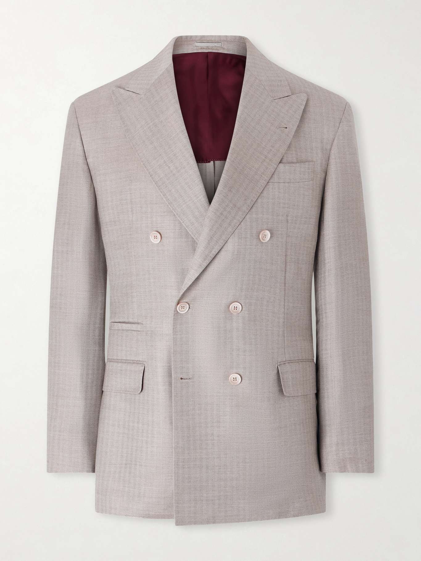 BRUNELLO CUCINELLI Double-Breasted Herringbone Cashmere and Silk-Blend Suit Jacket