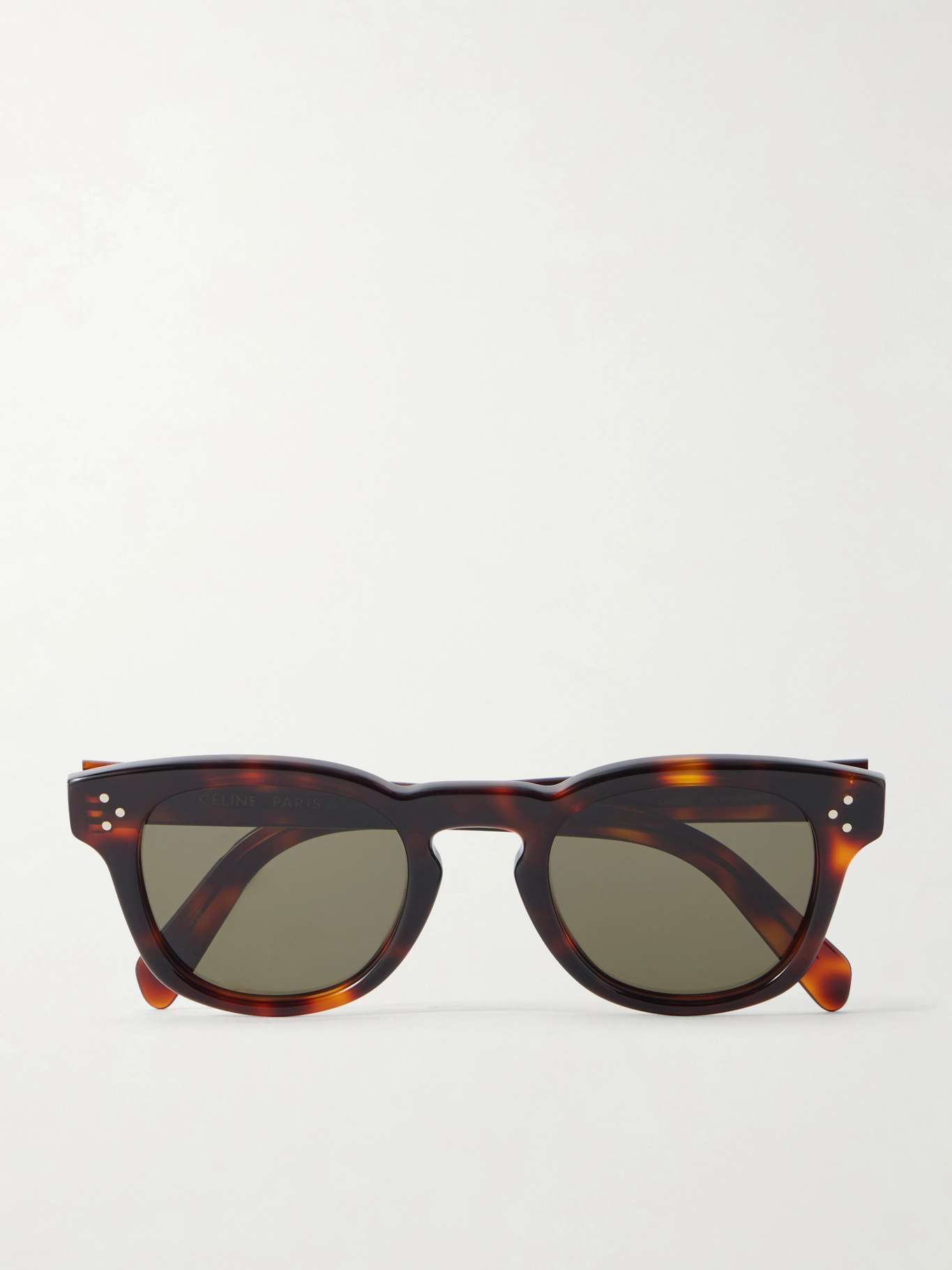 CELINE's sunglasses are classic — the slightly rounded frames will suit most face shapes. They're made from tortoiseshell acetate and bear the brand's signature triple studs at the hinge.
