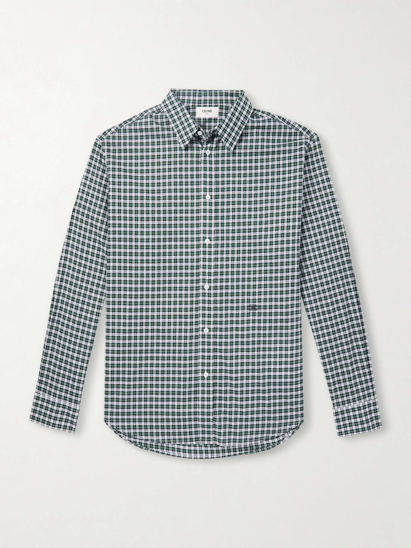CELINE Logo-Embroidered Checked Cotton-Poplin Shirt