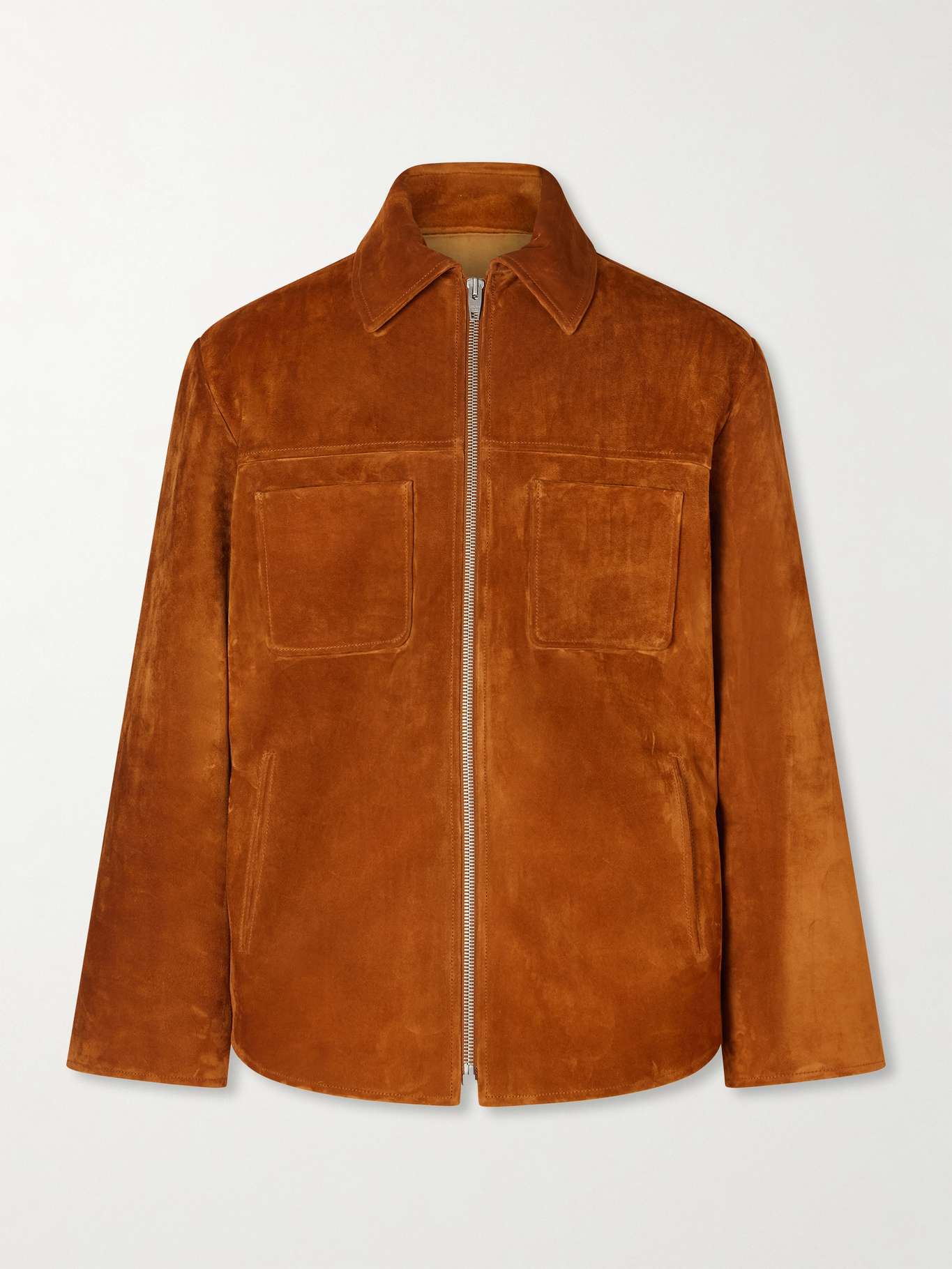 CELINE's jacket is cut from soft suede in a deep caramel shade. The shape is streamlined, showcasing practical details like a silver-tone zip and chest patch pockets
