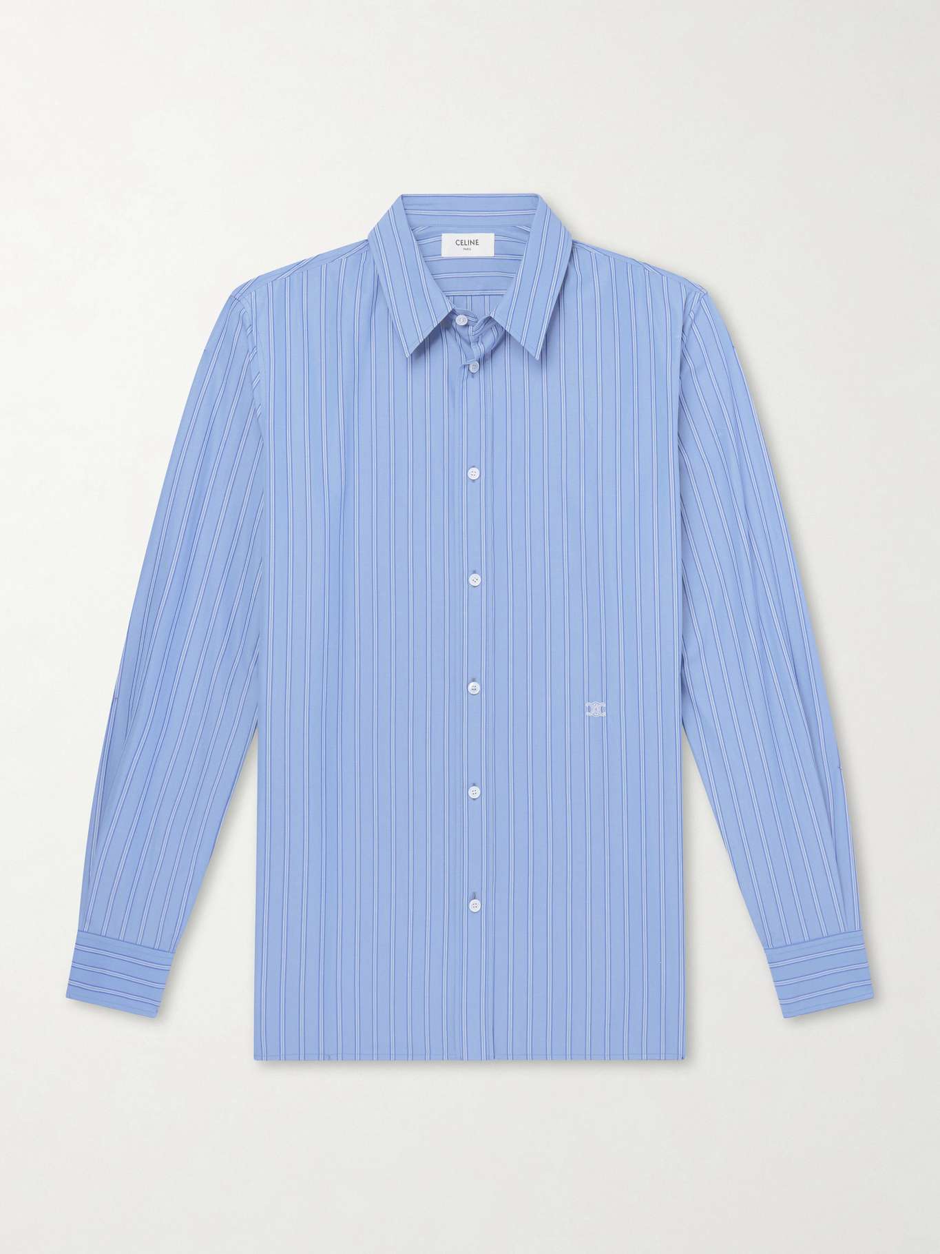 CELINE Logo-Embroidered Striped Cotton-Poplin Shirt