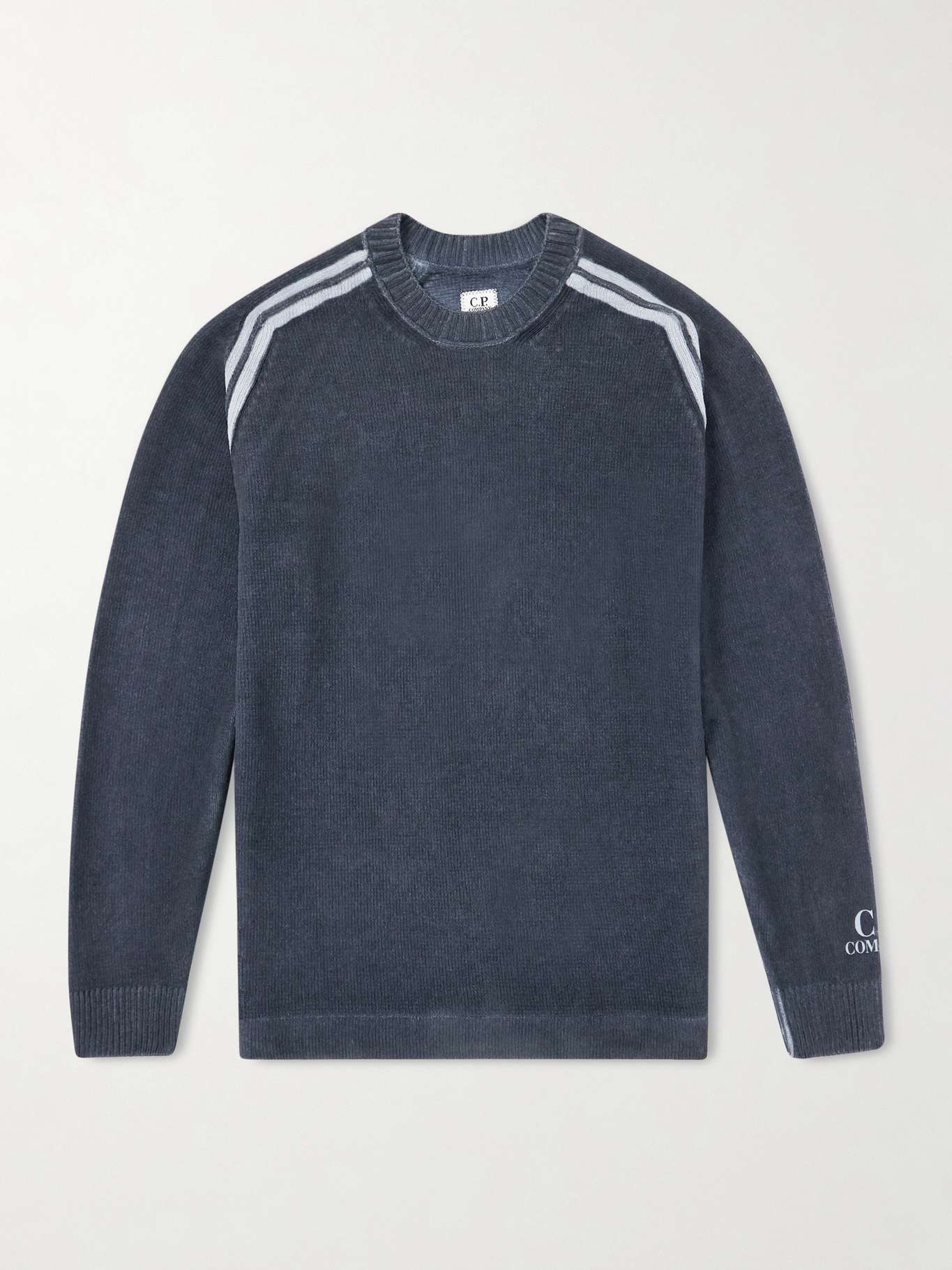 C.P. COMPANY Striped Logo-Embroidered Cotton-Chenille Sweater