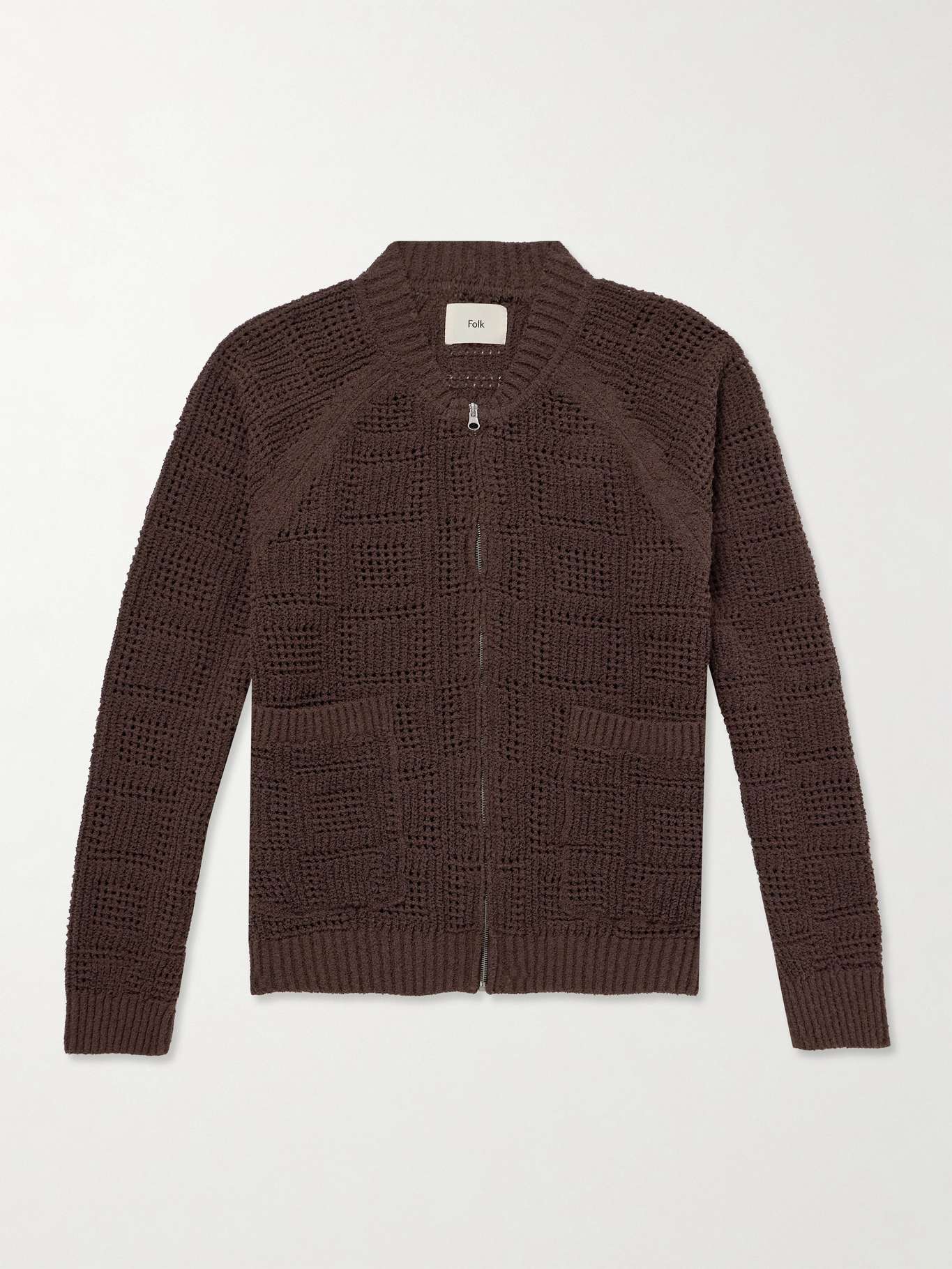 FOLK Open-Knit Zip-Up Cardigan