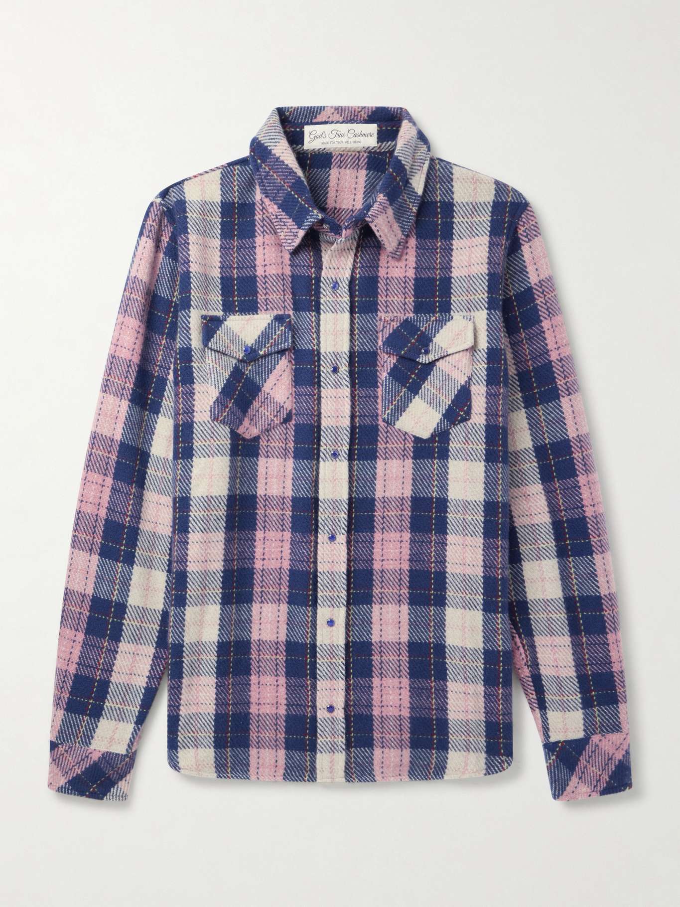 EXCLUSIVE AT MR PORTER. God's True Cashmere's designs are 'made for your well-being' from the most luxurious fabrics on the planet. This checked shirt has been tailored in Italy from pure cashmere, chosen for its exceptional softness and gentle feel on the skin. The gem-studded snaps, lapis lazuli in this instance, are a brand signature.