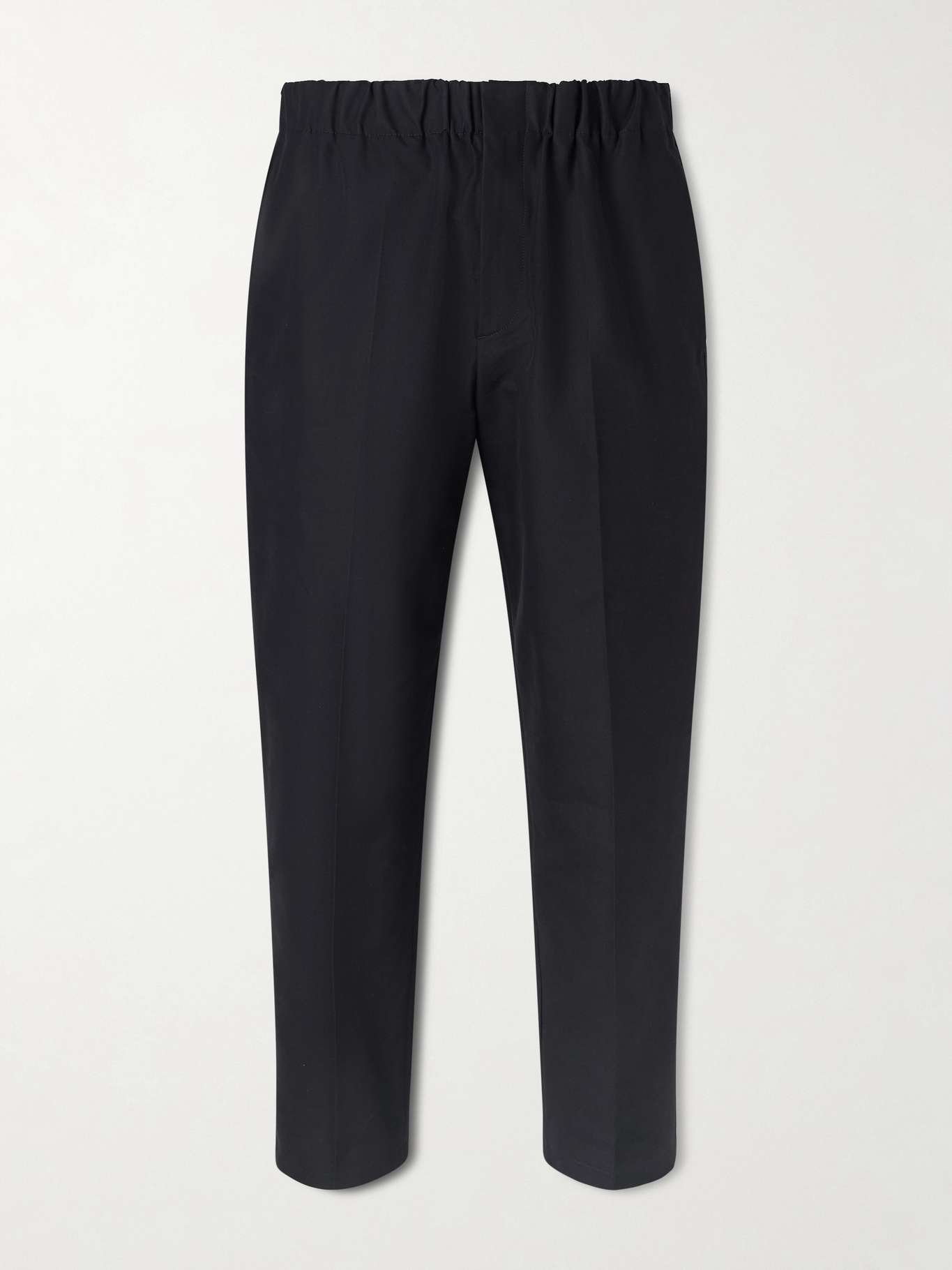Jil Sander's collections are all about proportion and scale. Tailored from crisp cotton, these trousers have a comfortable elasticated waistband and tapered legs. The classic black will go with just about everything.