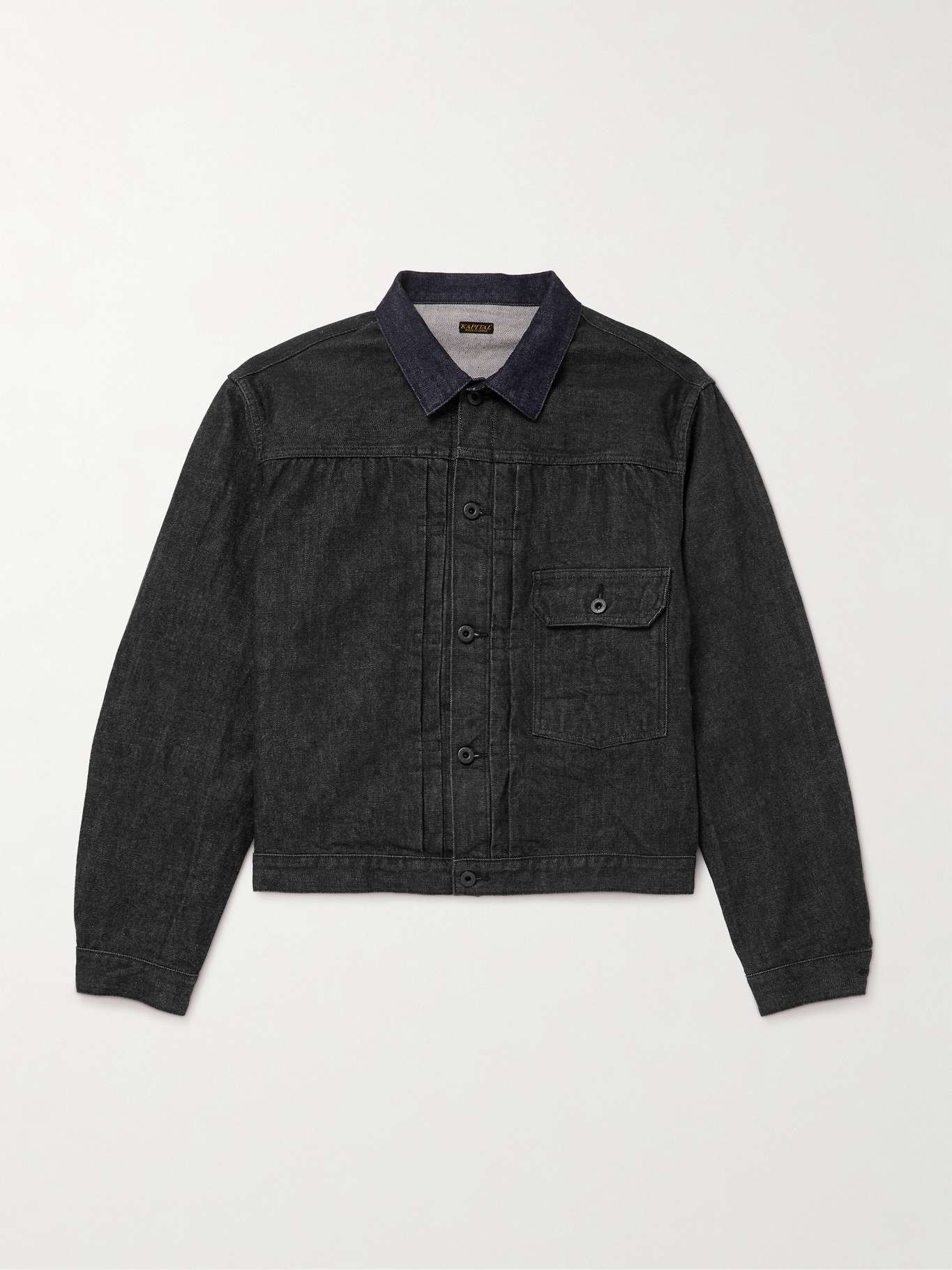 KAPITAL's jacket delivers a dose of offbeat cool. Cut from 14oz. denim, it's washed a slightly faded black and has pinched pleats at the back to define the shape. Adjust the fit and styling with the rear belt strap.