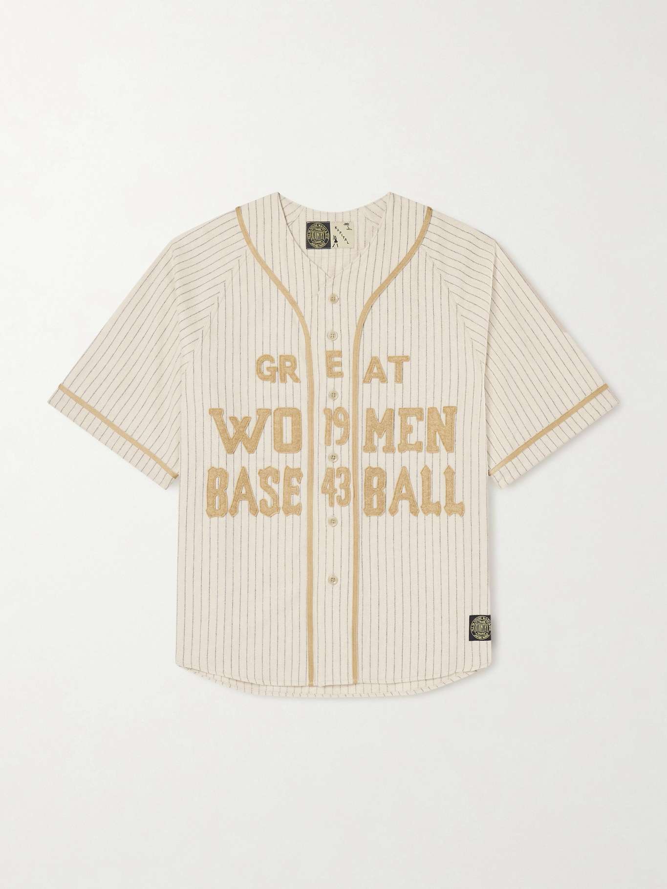 KAPITAL's wool-blend shirt champions the great women in baseball. Just like the classic kit, it's striped and has a contrasting trim tracing the sleeves and V-neck. It's finished with the designer's patch stitched above the hem.