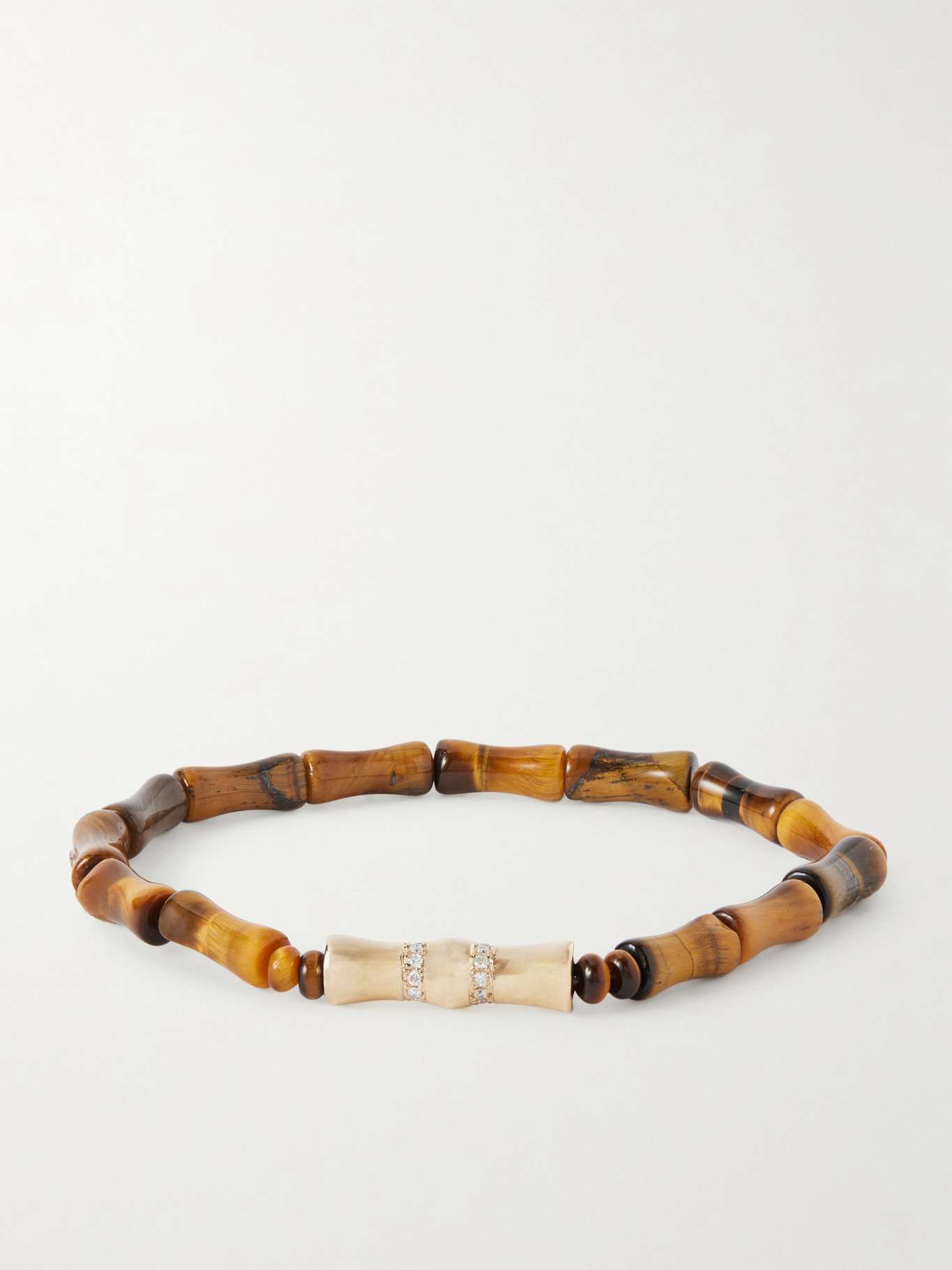 LUIS MORAIS 14-Karat Gold Diamond Tiger'e Eye Bracelet