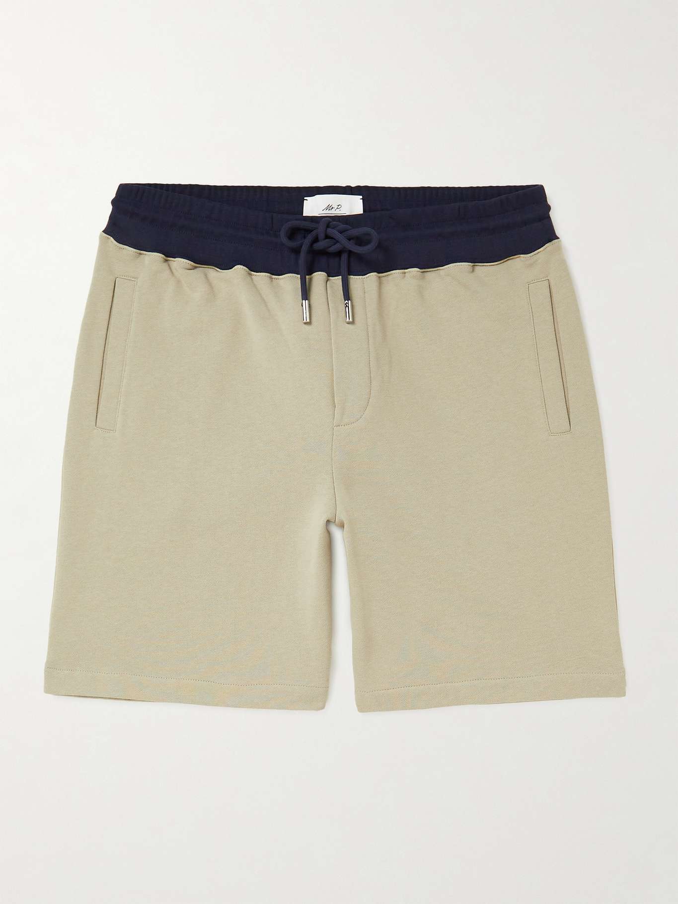 DESIGNED BY MR PORTER. Mr P.'s shorts are a great addition to your collection of casual staples, and they'll work particularly well whether you're kicking back at home or on holiday. They're cut from cotton-jersey and colour-blocked in beige and navy.