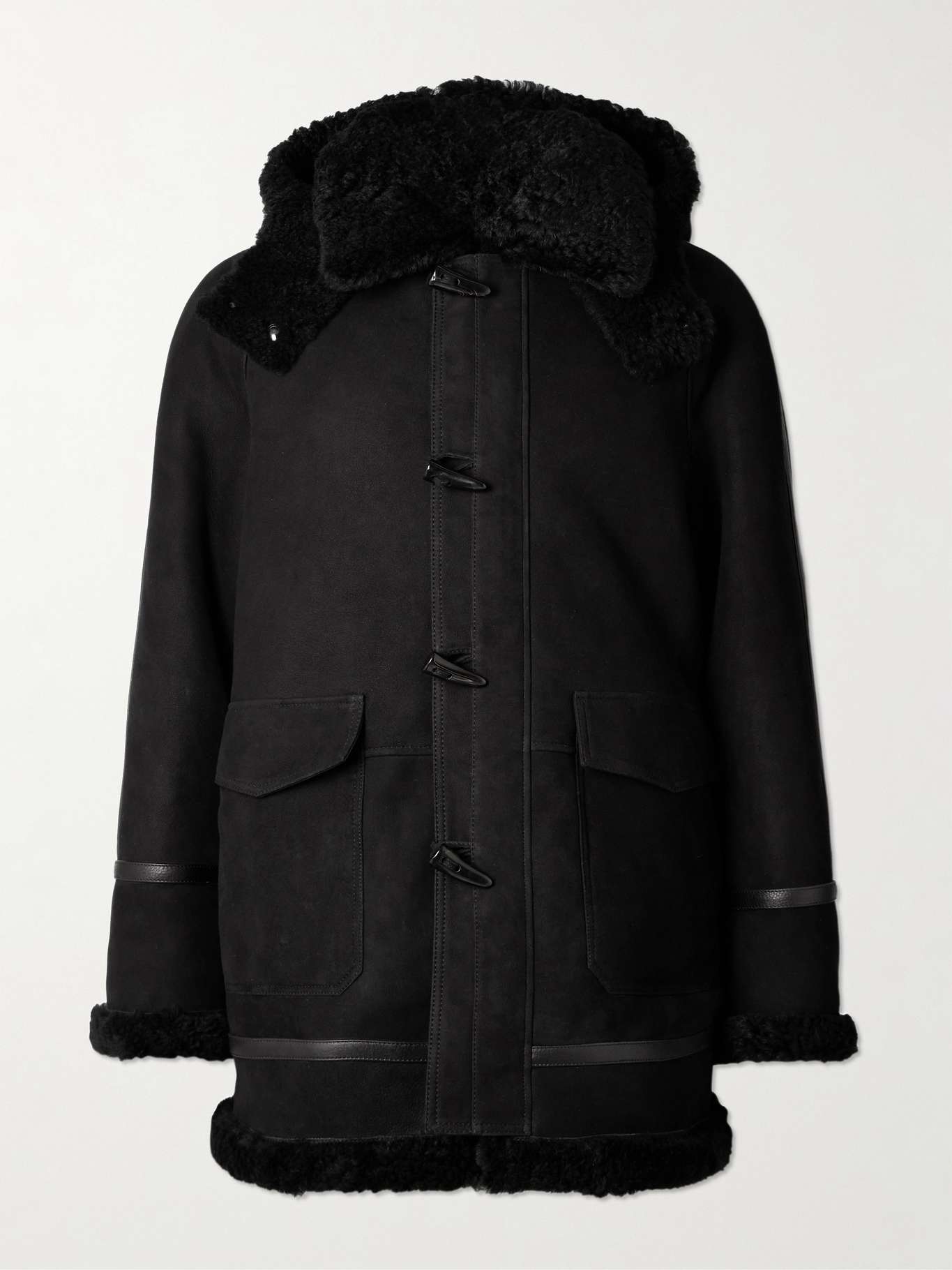 DESIGNED BY MR PORTER. Mr P.'s coat is a luxe take on a cold-weather staple. Modelled on the duffle – a favourite of beatniks and Mods – it's cut for an oversized fit from plush shearling and fastens with horn toggles.