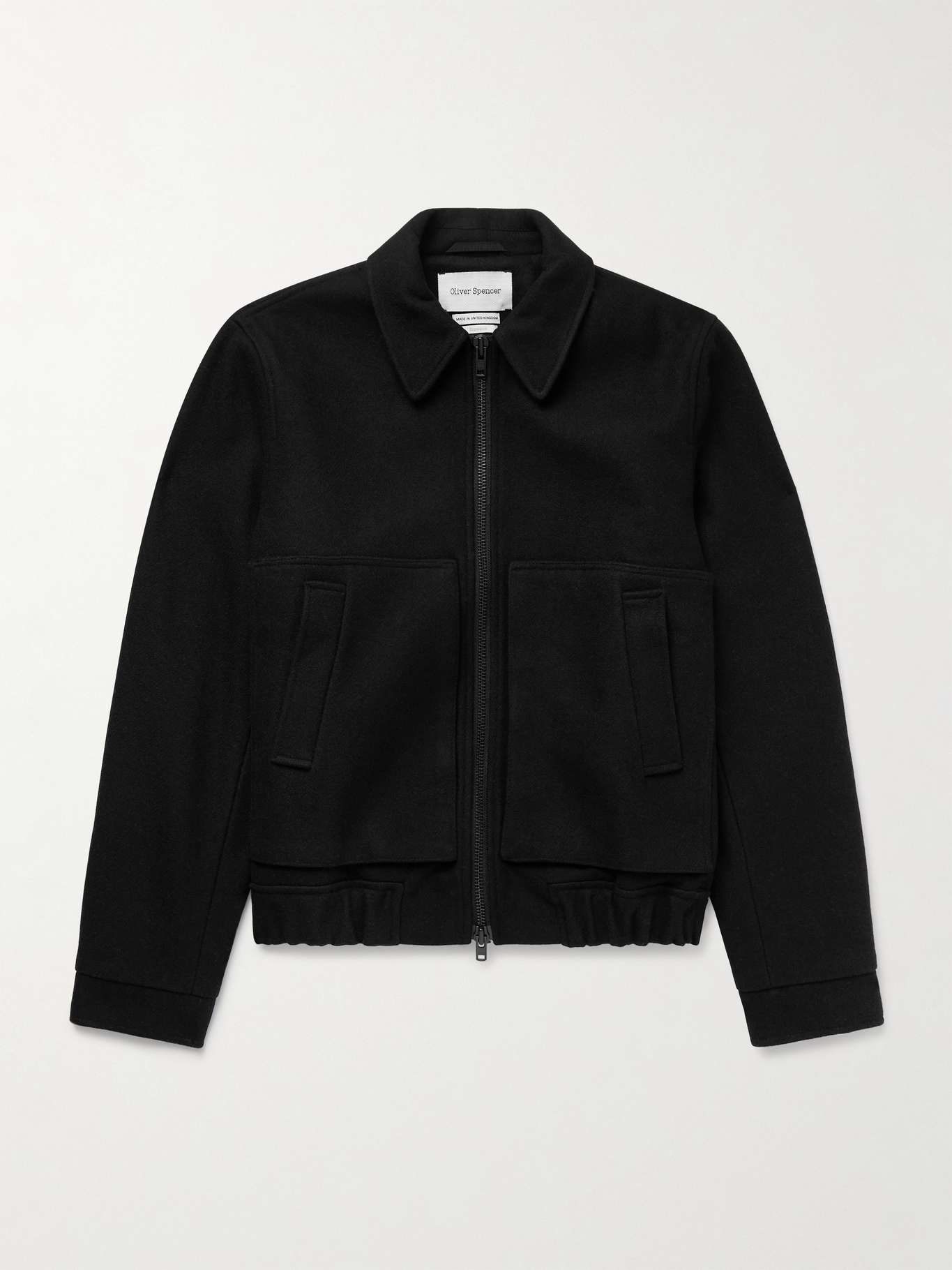 Oliver Spencer says the classic bomber jacket is "tweaked and improved from generation to generation". Refined for a sophisticated look, this 'Arlington' version features a turn-down collar, two-way zip fastening and oversized patch pockets. It's been made in the UK from wool-blend felt.