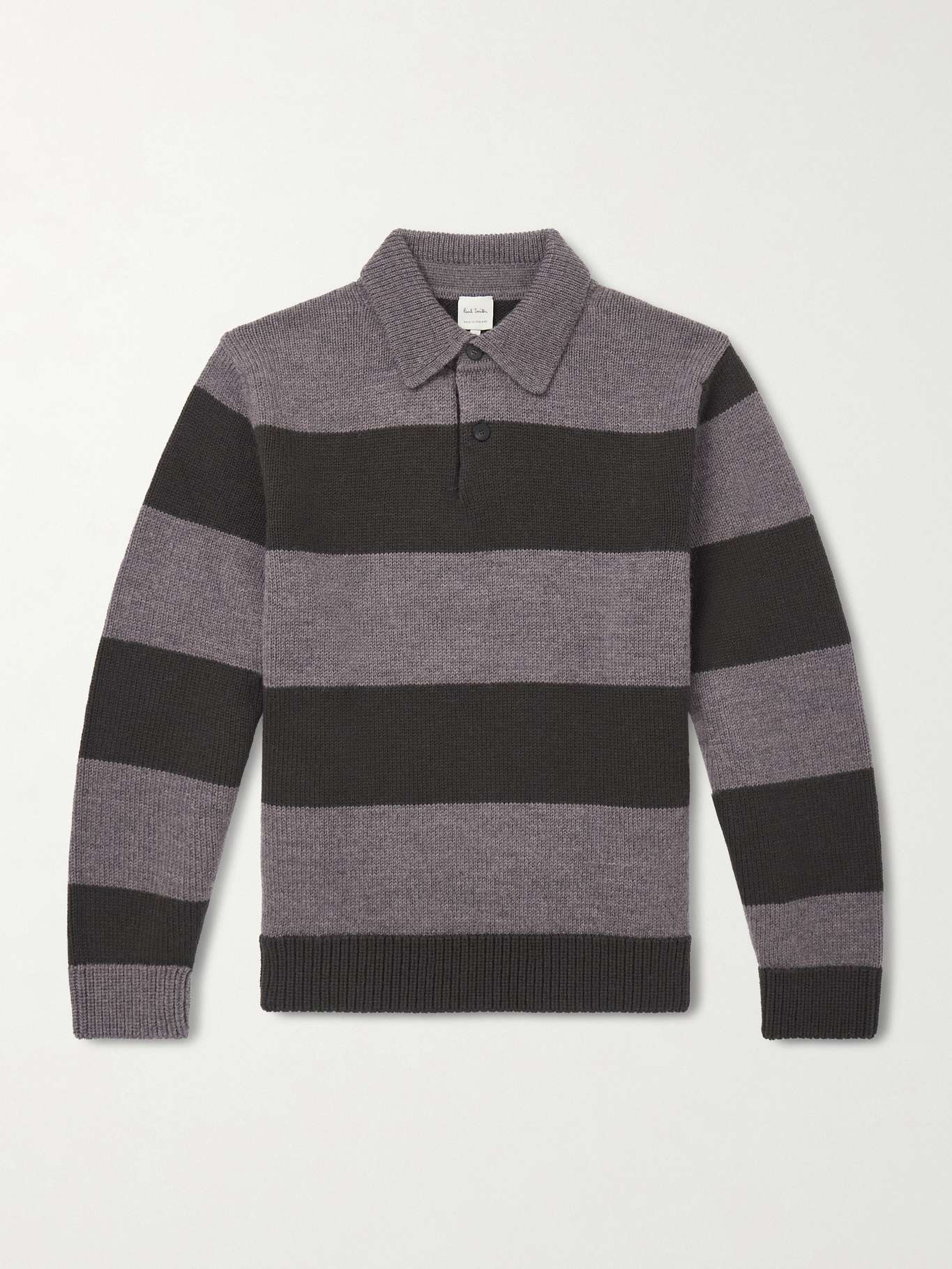 Paul Smith's polo sweater is jacquard-knitted with wide stripes. It's been made in the UK from pure wool and has a relaxed fit, with slightly dropped shoulders and neatly ribbed trims.