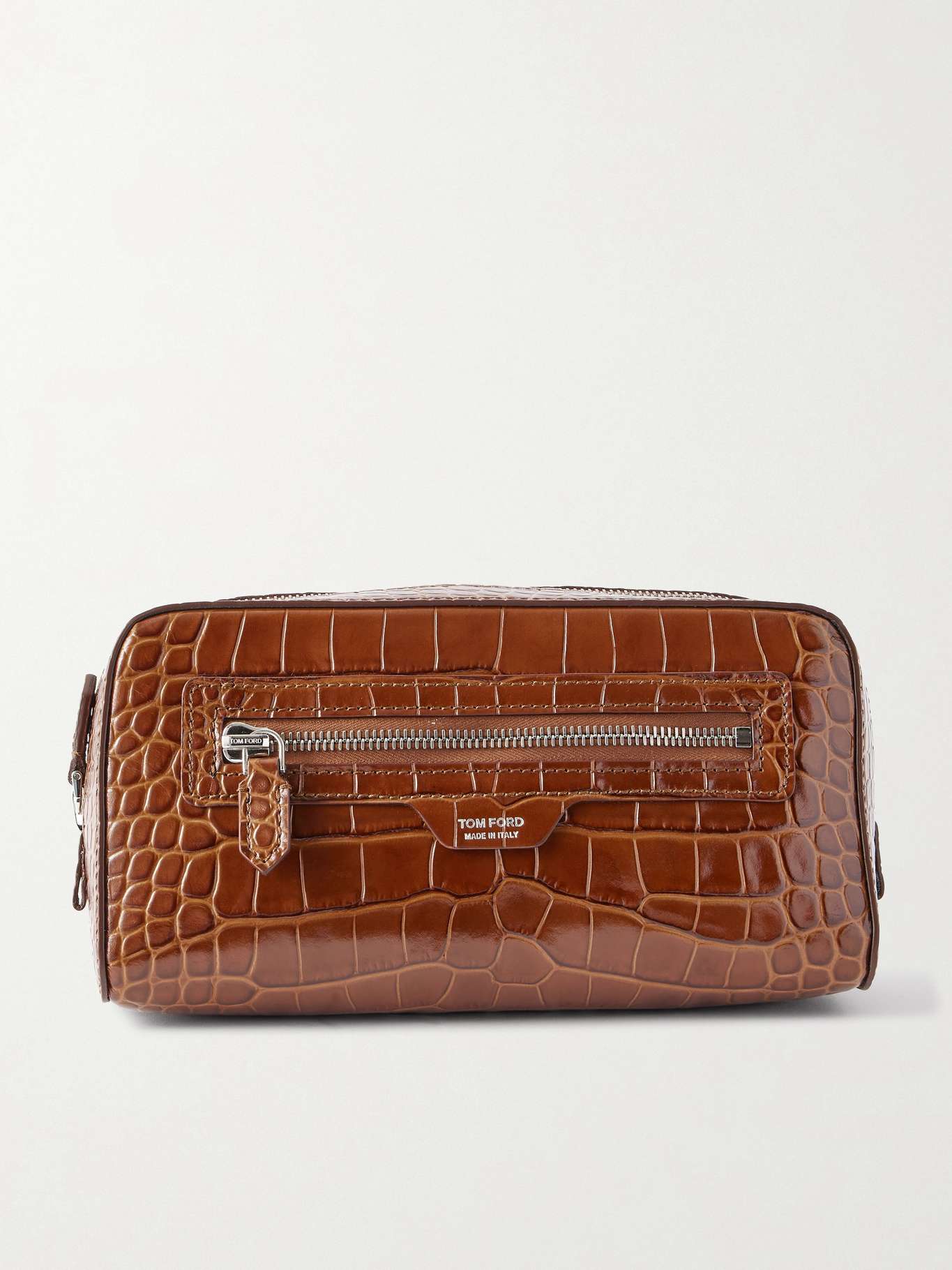 TOM FORD's washbag is a sure-fire way to travel in style. It's been made in Italy from glossy croc-effect leather with a front zipped pocket and a spacious twill-lined interior to house your grooming essentials.