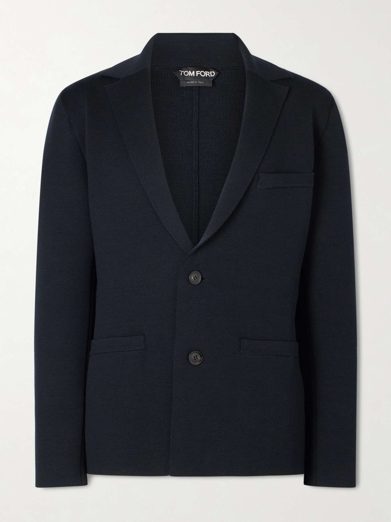 TOM FORD's jacket combines the ease of a cardigan with the polish of a blazer. It's double-face knitted from wool-blend with slim notch lapels. You'll find the matching trousers in our edit.