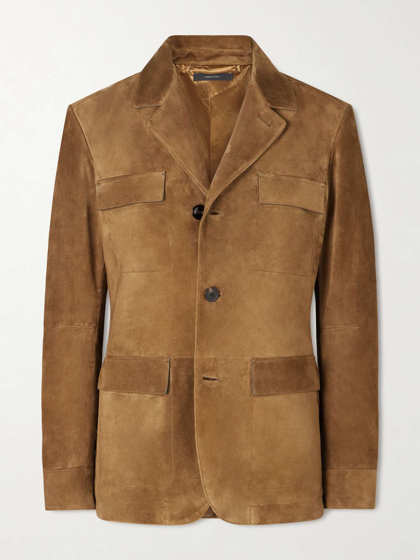 Drawing on military uniforms, TOM FORD's jacket is masterfully cut from suede and has four front pockets. It's framed by notch lapels and features horn buttons down the placket.