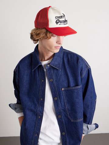 Studded Five Star Logo-Embroidered Canvas and Mesh Trucker Cap