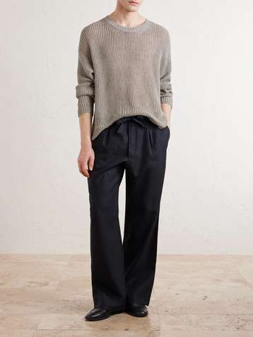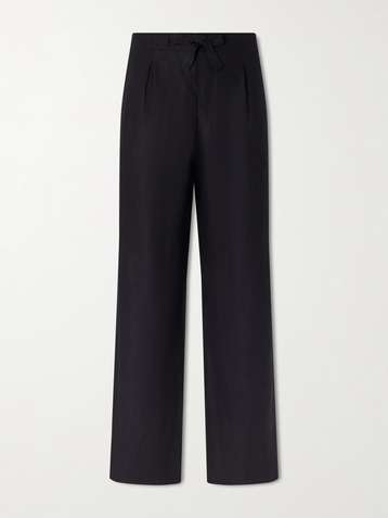 Straight-Leg Pleated Linen Drawstring Trousers