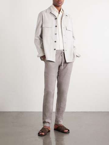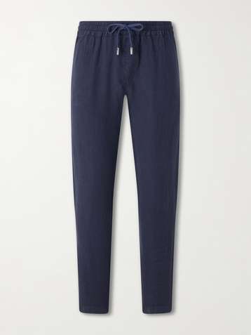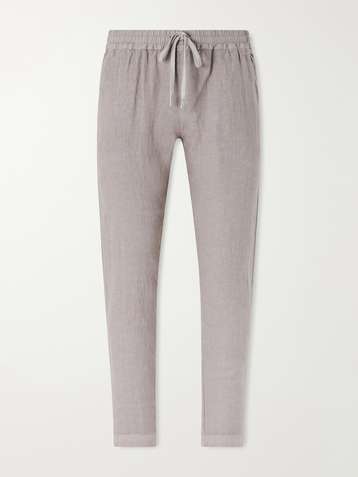 Straight-Leg Linen-Blend Canvas Drawstring Trousers