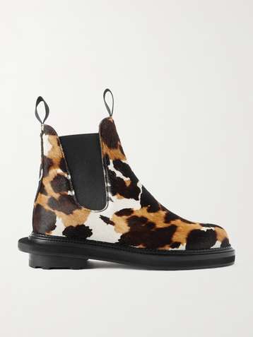 + Sacai Cow-Print Calf Hair Chelsea Boots