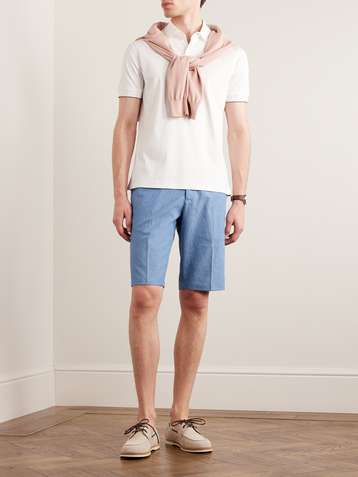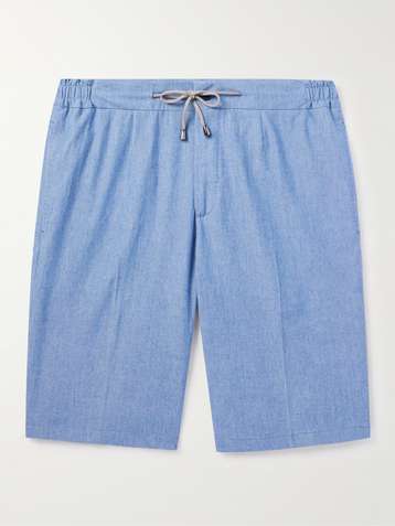 Slim-Fit Straight-Leg Pleated Cotton-Blend Shorts