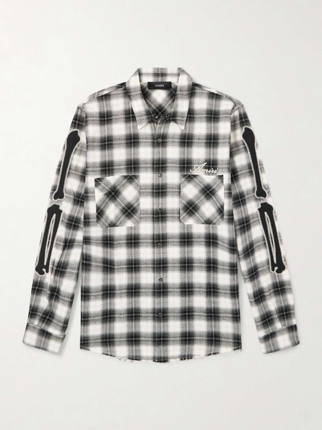 AMIRI Bones Appliquéd Frayed Checked Cotton-Flannel Overshirt