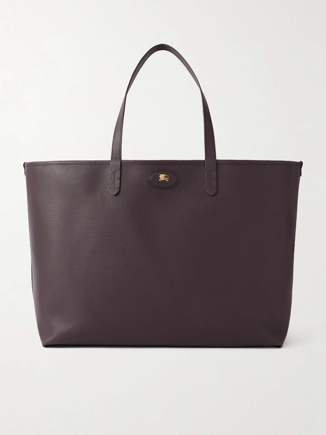 BURBERRY Large Reversible Full-Grain Leather and Checked Canvas Tote Bag