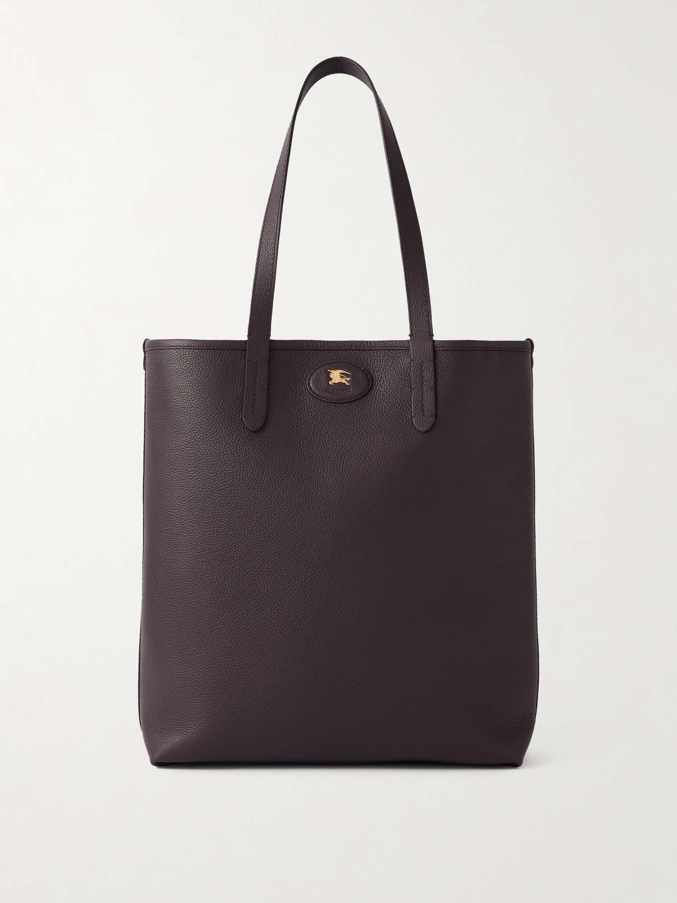 BURBERRY Reversible Full-Grain Leather and Checked Canvas Tote Bag