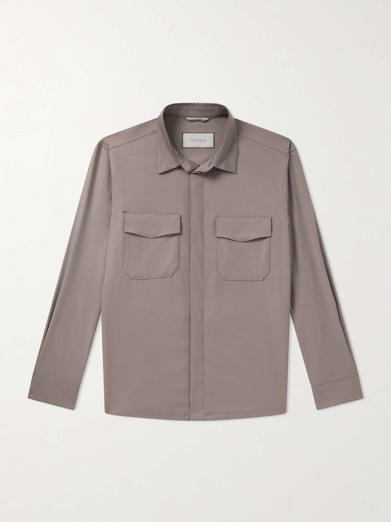 A contemporary take on tailoring, Canali's overshirt is cut to a boxy profile from smooth wool-blend woven with a hint of stretch for comfort. It has a discreet button placket, pleated sleeves and twin patch pockets.