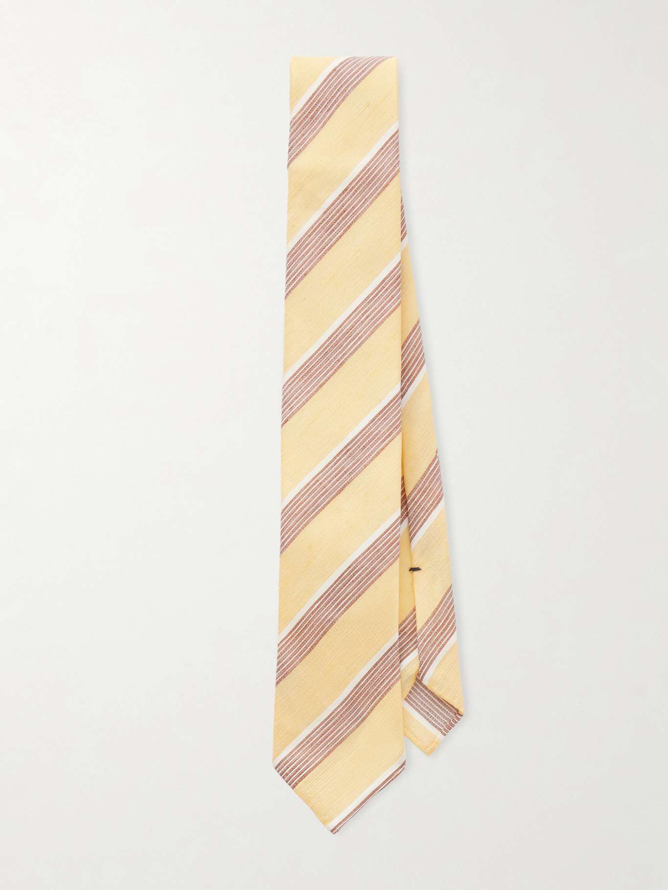 DE PETRILLO 7cm Striped Linen and Silk-Blend Tie