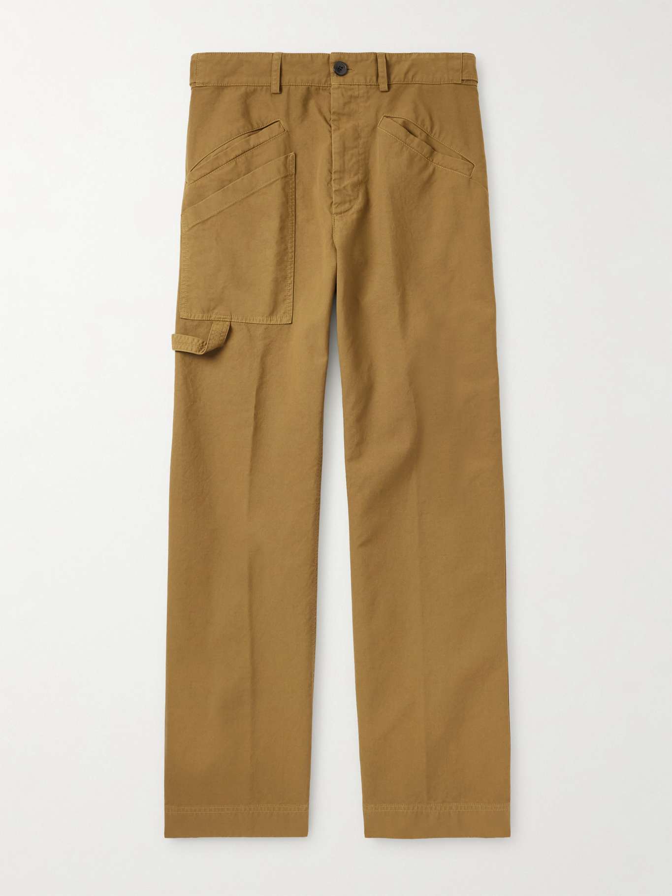 Dries Van Noten plays with expectations by reworking classic styles in unexpected ways. These overdyed compact cotton trousers blend tailoring with workwear elements—they feature an oversized patch pocket and a hammer loop, typically found on carpenter styles, repositioned at the front.