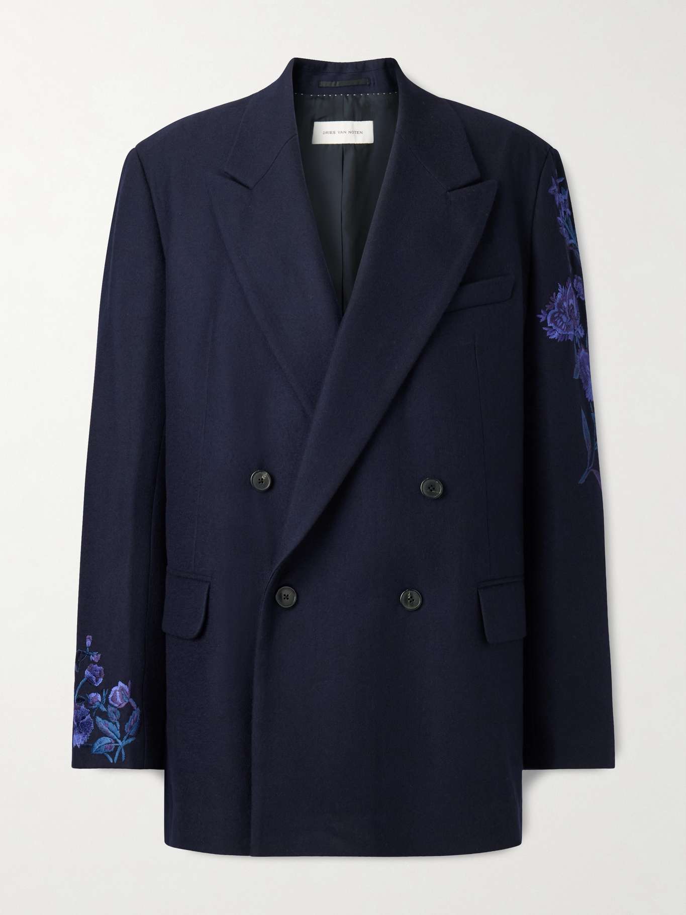 DRIES VAN NOTEN Double-Breasted Embroidered Wool-Flannel Blazer