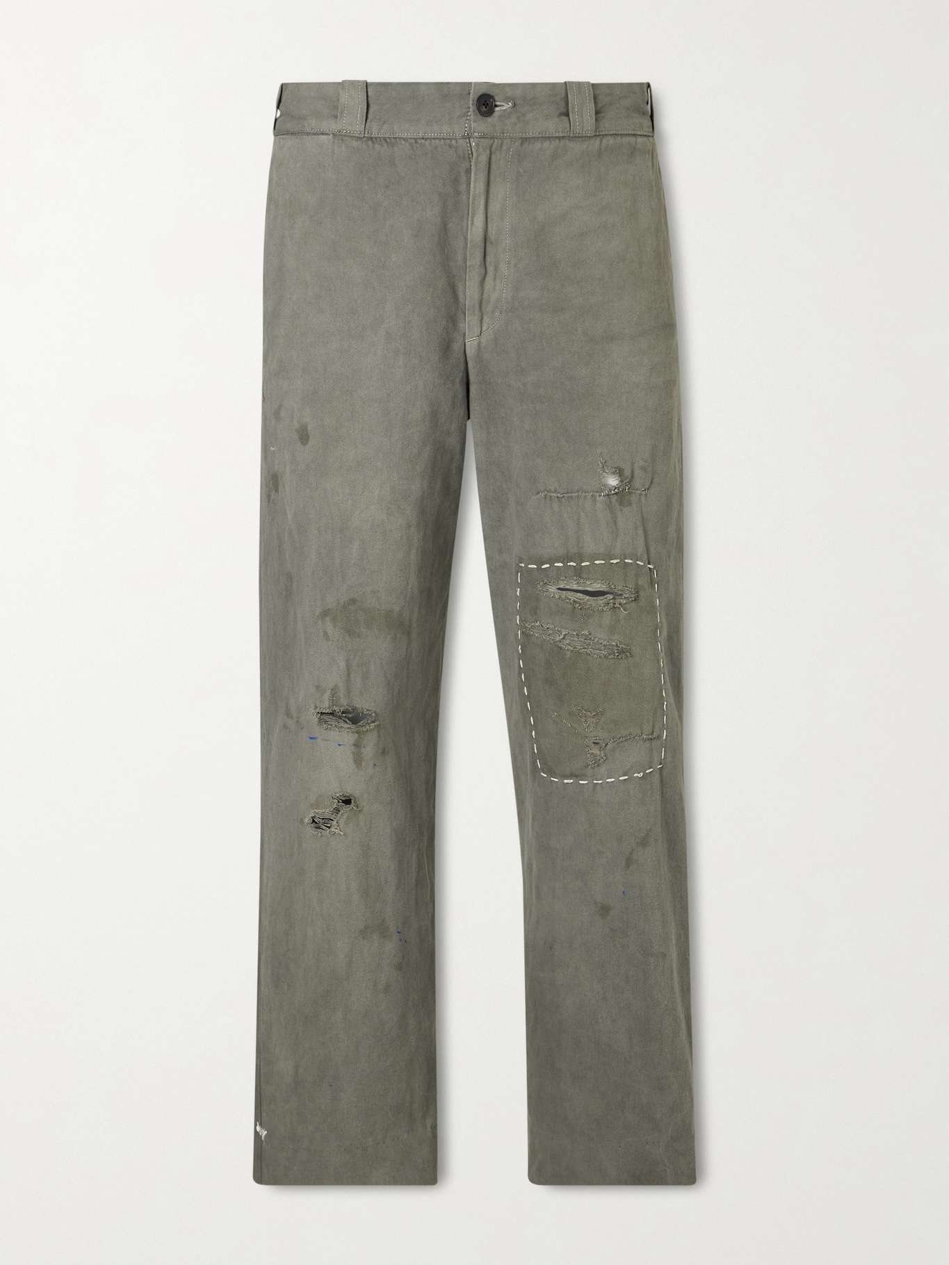 Enfants Riches Déprimés 'Soso's' trousers have been made in Japan from cotton and linen-blend, treated to a vintage wash. Heavy distressing and hand-stitched details give the illusion of repaired styles.